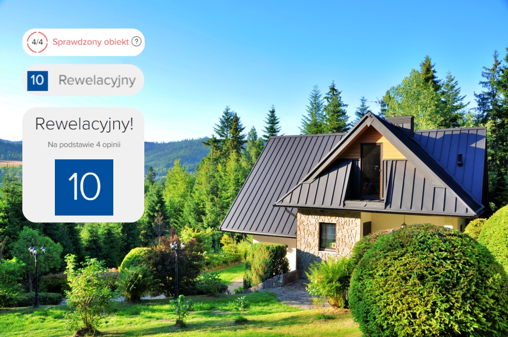 W pełni wyposażony domek o powierzchni 144 m2 z kuchnią, dwiema łazienkami, trzema pokojami z telewizorem, kominkiem, dużym ogrodem, miejscem do rozpalenia ogniska, miejscem parkingowym, oferujący 8 miejsc noclegowych z możliwością dodatkowej dostawki.